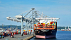 Arkivbildet viser et containerskip fra MSC som losser i Aarhus Havn i 2017