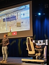 FRA RØROS TIL KRISTIANSAND: Samarbeidet mellom Hive Autonomy og Toyta Material Handling ble lansert i helgen på Røroskonferansen i regi av Logistikkforeningen Trøndelag. På scenen sto en konsoll der en operatør fjernstyrte en gaffeltruck som befinner seg ved Hives anlegg i Kristiansand.Foto: Toyota Material Handling