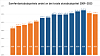 Oransje søyler er rødgrønn regjering. Blå søyler er borgerlig regjering. Regjeringsskiftene skjedde på høsten i henholdsvis 2013 og 2021.