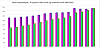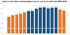 Oransje søyler er rødgrønn regjering. Blå søyler er borgerlig regjering.Regjeringsskiftene skjedde i på høsten i henholdsvis 2013 og 2021.