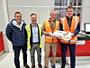 KAKELAG(ER): Leveransen ble feiret med kake. Fra venstre: Knut Lilloe Salvesen, KAM i Strongpoint, Gisle Elvebakken, adm. dir. i Strongpoint Norge, Ole Bakurowitz, product manager storage i Collicare og Knut Sollund, CEO i Collicare.Moderne Transport