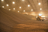 SIRKULÆRE TREPELLETS: Bildet er fra Skur 100 på Ormsundkaia. Herfra skipes trepellets til kontinentet og erstatter kull. Trepelletsene er produsert av Arbaflame på Kongsvinger. Trepelletsen lages av treflis, som er et kortreist overskuddsmateriale Det bidrar til høyere verdiskapning av trevirke og lavere CO2-fotavtrykk.