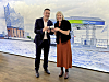 FEIRER: Karin Rådström, administrerende direktør i Mercedes-Benz Trucks og Miljan Gutovic, regionleder for Europa hos Holcim med en modell av en betongbil for å stadfeste avtalen mellom selskapene.