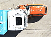 KOLLISJON: Her ser vi den nye sikkerhetsfronten i arbeid. På bildet innfeldt samme kollisjon, men uten sikkerhetsfront. Her blir skadene på personbilen mye mer alvorlige.