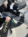 Han viser oss én av syklene på Skøyen, der sykkelen har