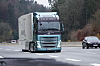 Snart kommer vi til de lange stigningene ved Holledau hvor den elektriske 40-tonneren sier farvel til München-området. Lastebilkollegene på veien legger knapt merke til den Isblå Volvo FH med aerodynamisk semitrailer. Hvis man ikke ser den beskjedne Electric-merkingen på dørene eller i grillen, er det nesten umulig å vite at det er morgendagens lastebil som passerer.