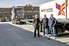 FLEKSIBEL: Roland Freiberger (t.v.) i Harlem Solutions har tatt i bruk den første hengeren Leci Trailer Openbox C+ i Norge. Den har Dag Harlem, som er både kunde og leverandør i dette tilfellet, og Kim Christensen i Norway Trucks store forhåpninger til.