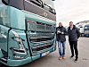 VINNERE: Sjefen Karstein Ahlin fikk både førerplassen og trofeet under den norske overrekkelsen av «Truck of the Year» hos Volvo på Furuset i Oslo. Han og salgsdirektør Bjørn Inge Haugan gjør det bra med FH Electric.