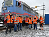 Det var en munter Onrail-gjeng som ønsket lokfører Marius Larsson god tur til Bergen.Foto: Glenn Lund.