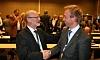Her møter statssekretær John-Ragnar Aarset i Samferdselsdepartementet tidligere styreleder Erling Sæther i NHO LT. Dette var vel og merke før pandemiens tid, hvor det var lov til nærhet og klapp på skulderen. Foto: Per Dagfinn Wolden