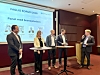 PÅ PLASS I BODØ: Daglig leder Morten Watle i Green H (til venstre), veidirektør Ingrid Dahl Hovland og adm.dir. Kevin Slettmyr i Nordasfalt.Kari Karstensen, Statens vegvesen