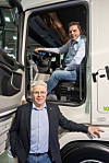 ELEKTRISK: Om et drøyt halvår kan teknisk sjef Asgeir Ripe i Transferd sende fem nye elektriske Scania ut i trafikk. Det gleder adm.dir Frode Neteland i Scania.Espen Braata/Norsk Scania