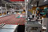 pakkebord, men nå går de på et kort transportbånd til OmniMod, som sender