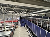 AutoStore-anlegget fyller hele butikklokalets ene side. Bortenfor den rød skilleveggen er det tilgjengelig butikklokalet mens gulvarealet nærmest er tradisjonelt lager for større varer som ikke passer i AutoStore-en.