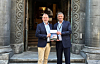 Fra venstre: Styreleder i Norske Flyspedtørers Forening, Kjell Ivar Maudal, overrakte flyfraktrapporten til Avinor's konsernsjef, Abraham Foss.