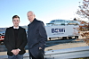 Far og sønn, Bewi-gründer Svenn Bekken og sønnen Christian Bekken under åpningen av Hitra Kysthavn på Jøsnøya i 2014. I dag er Svenn forretningsutviklinger og Christian adm. direktør. De er også fast inventar på Oslo Børs, og vet hva det dreier seg om når børsbjella slår. Foto: Per Dagfinn Wolden