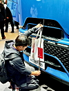 HYDROGEN: Det var generelt mange skuelystne når det ble holdt visninger på standene, her en kinesisk hydrogenbil.Foto: Torbjørn Eriksen