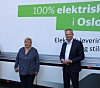 Statsminister Erna Solberg roser Schenkers miljøinvesteringer i elektriske lastebiler. - Dette sikrer at vi oppnår vårt mål om 100 % elektrisk varedistribusjon i Oslo innenfor Ring 3, sier Schenkers adm. direktør, Knut Eriksmoen.