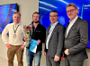 Fredrik Osnes (nr. to f.v.) ble Speditørskolens beste i 2023. Her er han avbildet sammen med Jan Arild Torekoven (DB Schenker), Wolfgang Frank (DB Schenker) og Claus Haals (NHO LT).
