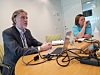 NHO Logistikk og Transports advokater, Thor Chr. Hansteen og Camilla Raastad under dagens logistikklunsj hvor temaet var åpenhetsloven. (Foto Silje Vhile Braaten)