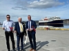 Skipsekspeditør Per H. Lund (midten) gleder seg over at Finnsnes nå har anløp av kystruteskip som Havila Capella.