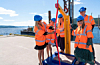 Snoren klippes. - Dette er en milepæl, sa ordfører i Drammen, Monica Myrvold Berg (Ap) da hun klippet over snoren som var bundet mellom kranen og steinen. (Foto: Drammen Havn)