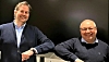 Narviks havnedirektør Børge Edvardsen Klingan (t.v.) kan saktens smile når ny togrute fra Narvik til Finland nå blir en realitet. Her tar han et koronavennlig «albuedunk» med direktør Kjell-Olav Gammelsæter i Norske Havner, etter at havnen ble medlem i Norske Havner 8. mars. (Foto: Anna Ljunggren).