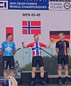 Fred Voldset var først over målstreken og ble verdensmester på landeveissykkel, klasse M45-49, i 2019. (Foto: privat)