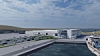 Her stikker snart Mowi spaden i jorda. llustrasjon over Jøsnøya med Hitra Kysthavn til venstre, Hitra Industripark Vest bak i midten og Hitra Industripark Øst nede til høyre. (Foto: Hitra kommune)