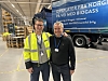 Rune Berg Stiansen, administrerende direktør i DSV Road (f.v.) skryter av miljøengasjementet til Norgips. Ikke bare sverger Drammen-bedriften til intermodale jernbaneløsninger for godset, mesteparten av godset som fraktes landeveien blir kjørt med en slik Scania med biogass på tanken. Her er Stiansen sammen med Ulf Erik Krüger Solheim, administrerende direktør i DSV Solutions.Foto: Glenn Lund