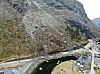 KRAFTIG: På det dypeste har steinnedslaget slått et hull på halvannen meter i veibanen. Statens vegvesen anslår at om lag 1500 m³ med stein fortsatt ligger igjen i ura ovenfor veien.