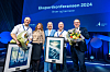 VANT I FJOR: Fra venstre: adm.dir. Matts Johansen fra Aker BioMarine, Statssekretær Anne Marit Bjørnflaten, adm.dir i Eksfin Tone Lunde Bakker, CEO i Pixii Kenneth Bodahl og adm.dir. Håkon Haugli i Innovasjon Norge