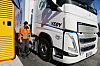 Tungbilsjåfør Claudiu setter i ladepistolen på Volvoen og forklarer at han som regel lader fra 45 til 60 minutter. Her tar batteriet imot 235 kW og han det holder lenge til kjøringen rundt Oslo, Moss og Drammen.