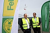 Per-Kenneth Øye (til venstre) i Felleskjøpet Agri og Lars Erik Marcussen i HeidelbergCement har bestemt seg for hvilket rederi som skal frakte korn og stein utslippsfritt. (Foto: Arnfinn Mauren)