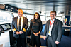 Kaptein Eirik Johansen, varaordfører i Bergen Eira Martinsen Garrido og konsernsjef i Fjord Line Brian Thorsted Hansen under gjenåpningen i Bergen.