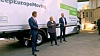 Schenker er på flyttefot. Dette bildet er imidlertid fra Erna Solbergs avduking av DB Schenkers nye elektriske Volvo FL sist høst. Her sammen med DB Schenkers konsernsjef Jochen Thewes (til venstre) og Schenkers toppsjef i Norge, Knut Eriksmoen.