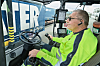 Truckfører Ib Andersen fra Taulov Kombiterminal er svært fornøyd med den nye reachstackeren, som byr på god komfort, godt utsyn, ingen vibrasjoner og trinnløs kjøring med lett pedalbruk – styrt med et lite ratt og joystick.Foto: Gert Laursen