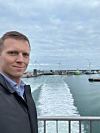 Markedssjef Mathias Bernander i Kristiansand Havn på vei til Hirtshals havn og utvekslinger om sjøveis gods, transport og logistikkløsninger.