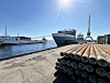 del av det. Over kaikanten i Vestfold-byen skipes også store mengder stål og