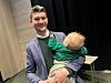 GARDERMOEN: Vesle Anton på åtte måneder var med pappa Knut Gravråk på transportkonferanse. Og den nye NLF-direktøren håper ikke det blir den siste. Sjåførblodet renner i årene i slekten og den nybakte pappaen er spent på fortsettelsen både for sønnen og fremtidige lastebileiere.