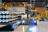 FORSIKTIG: Aluminiumssylindre blir satt nennsomt ned på spesielle kassetter for å unngå skader.