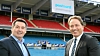 Her Lars Smith og PostNords adm. direktør, Robin Olsen på Ullevål stadion. Foto: Per Dagfinn WoldenPer Dagfinn Wolden