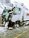 STYGG ULYKKE: Et vogntog mistet kontrollen over semien som kom over i motgående og traff i front.
