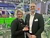 Movu vant prisen Årets produkt, delt ut av det tyske logistikktidsskriftet Materialfluss. Her holder LIS-CEO Sue Kristiansen Johannessen prisen sammen med Movus Anton Blidberg.