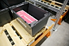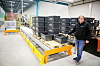 Kassene stables opptil 16 per pall for uttransporten. Det gjøres automatisk av en Kuka-robot.