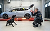Hundefører Susann sammen med narkotikahunden Billie på Svinesund tollsted.
